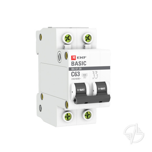 Выключатель автоматический двухполюсный 63А С ВА47-29 4.5кА (Цены, характеристики, отзывы)